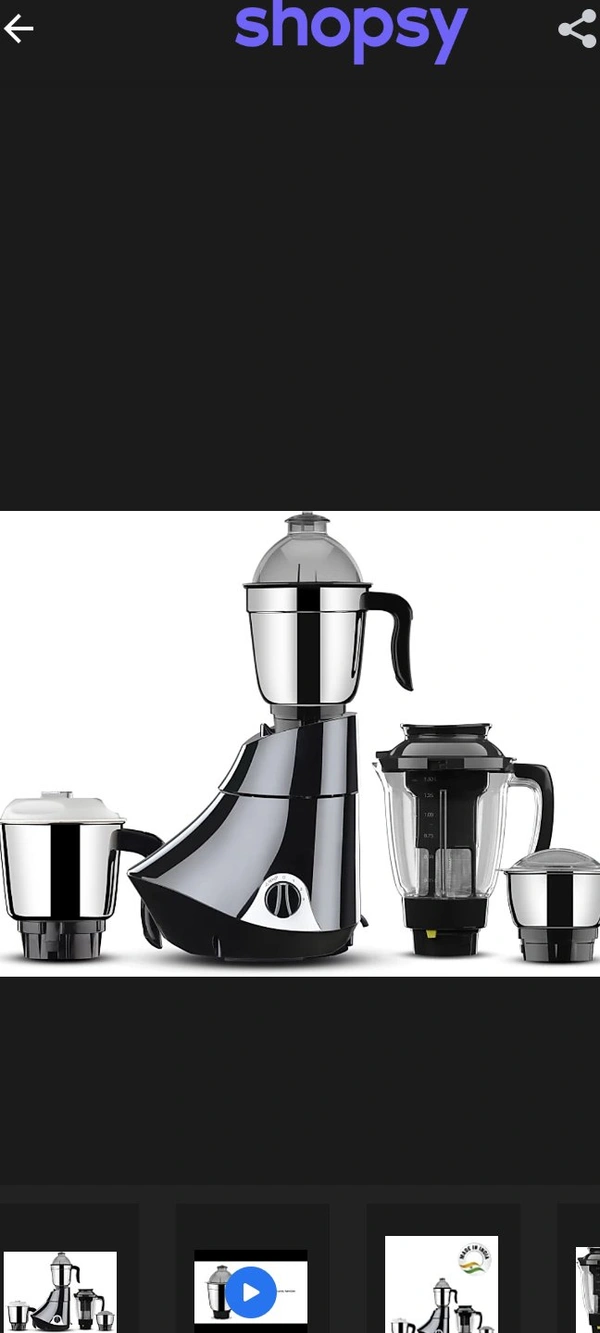 (4 Jars, Black)Total Jars: 4Centrifugal Juicer : Easy and quick juicing, ideal for larger fruits and veggies750 W : Higher the Wattage, tougher the Juicing/GrindingSuitable for: Juicing, Wet Grinding, Chutney Grinding, Grating, Mincing, Dry Grinding, Blending7 Days Replacement Policy, No questions asked.